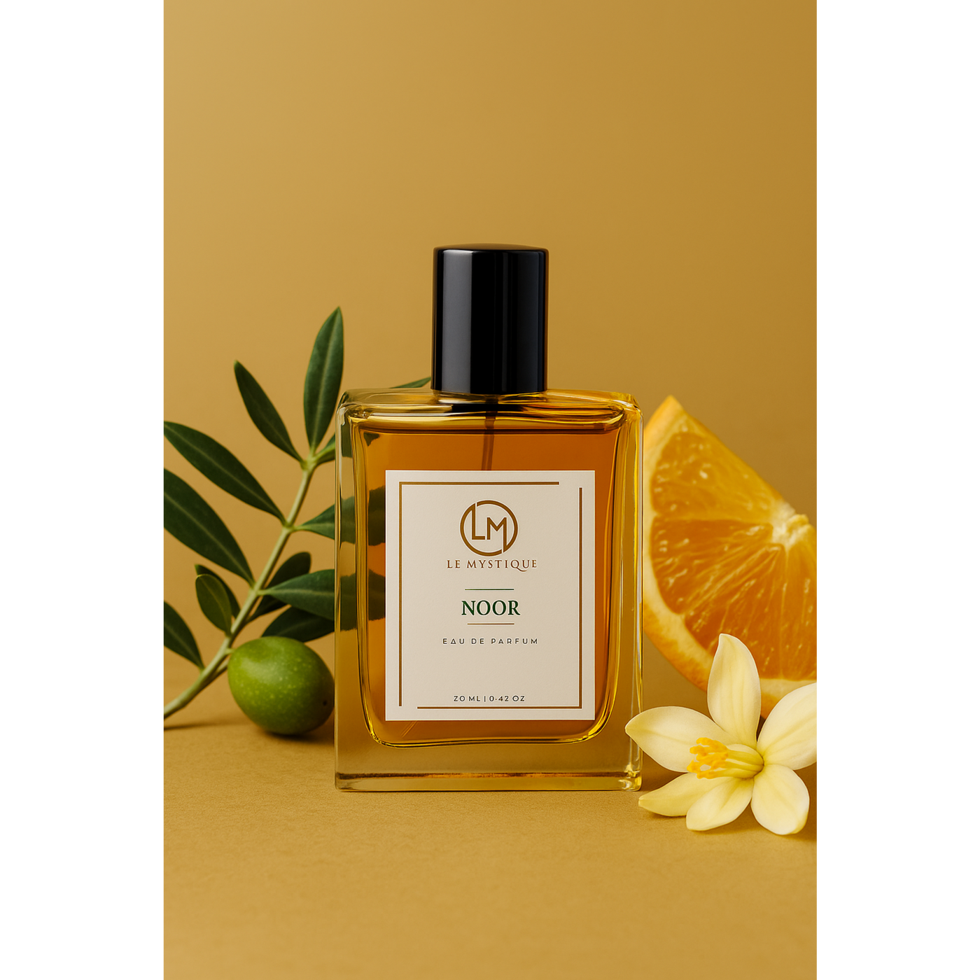 "Indulge in the seductive allure of 'Noor,' a captivating blend of Sage, Bergamot, Peony, Iris, Jasmine Sambac, Lily of the Valley, Vanilla, and Velvet. Let its enchanting aroma weave a spell of irresistible charm."